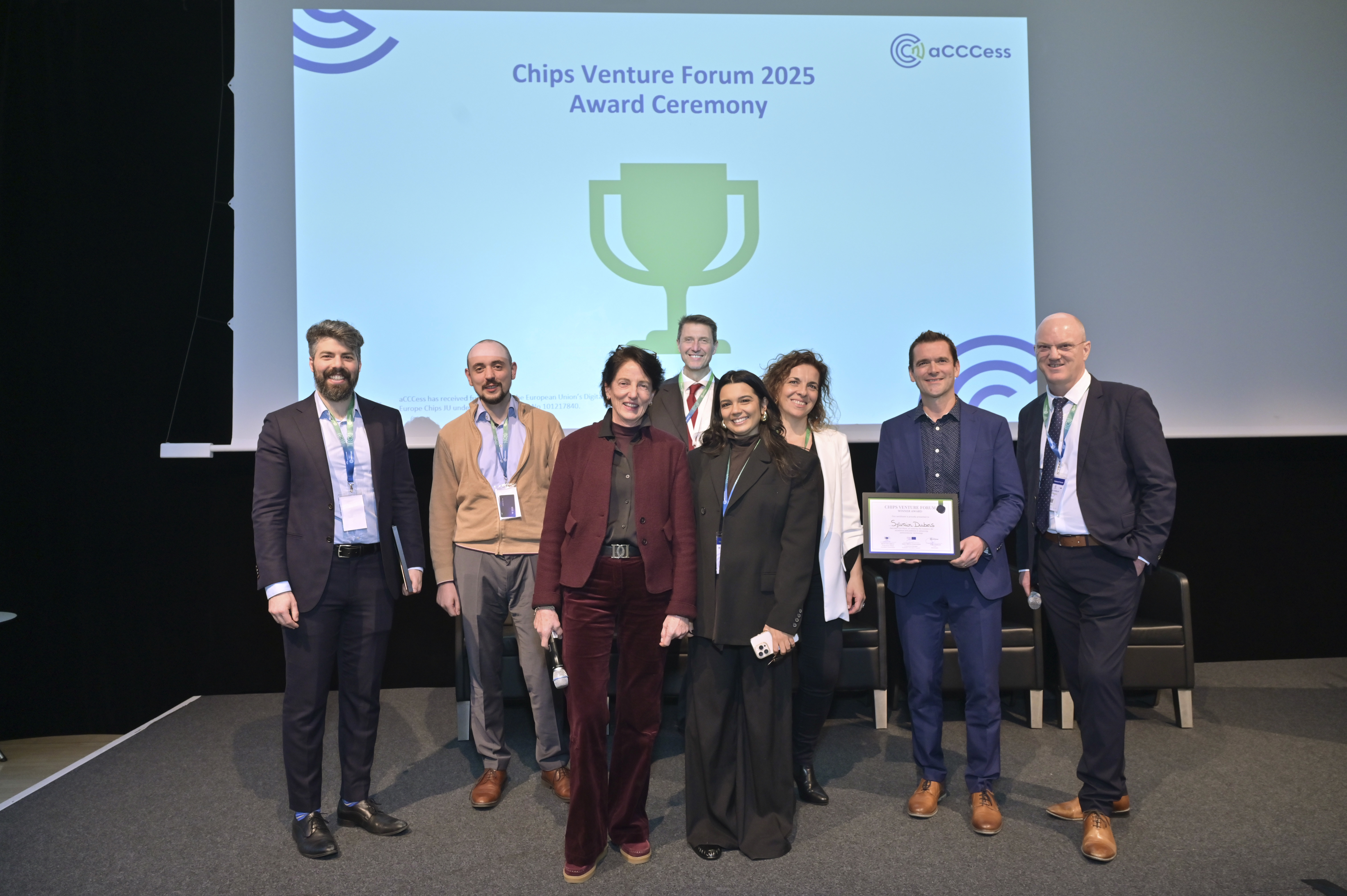 This year’s winner was Vertical Compute, represented by Sylvain Dubois, is pioneering next-generation in-memory computing architectures that merge logic and MRAM to overcome the data–compute bottleneck, enabling ultra-efficient AI and edge processing. Vertical Compute has been celebrated for its outstanding innovation and potential to shape Europe’s semiconductor landscape.